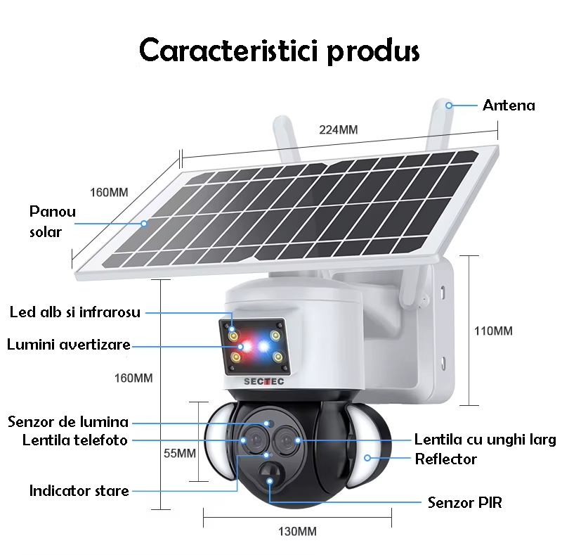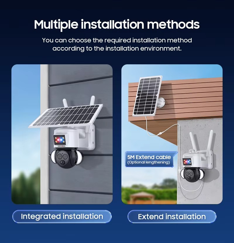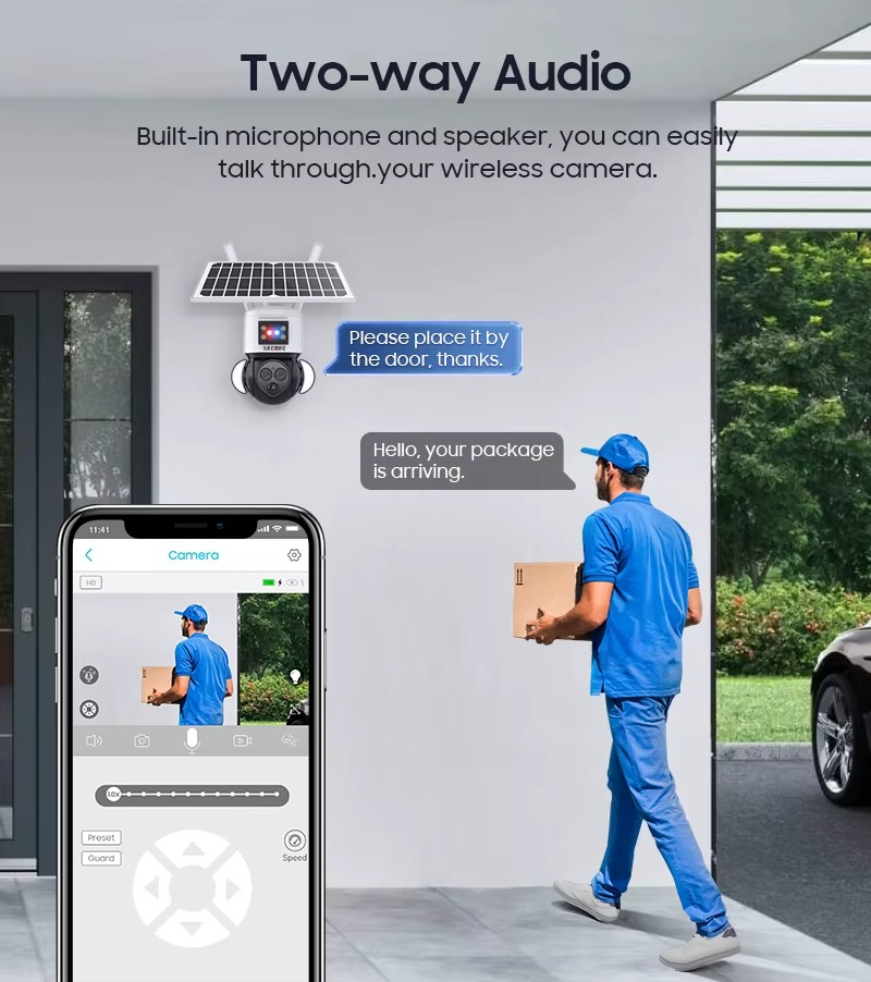 • Autonomie Maximă cu Panou Solar 20W & Baterie Integrată: Echipată cu un panou solar high-efficiency de 20W și o baterie internă de capacitate mare (20000mAh), camera se încarcă eficient folosind energia soarelui. Spune la revedere grija prizelor și bucură-te de funcționare continuă, indiferent de locație.