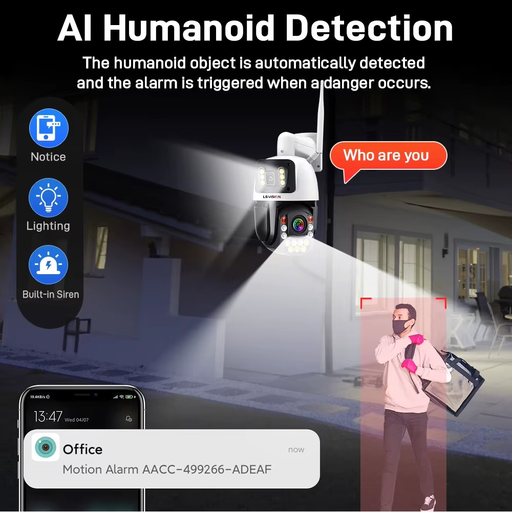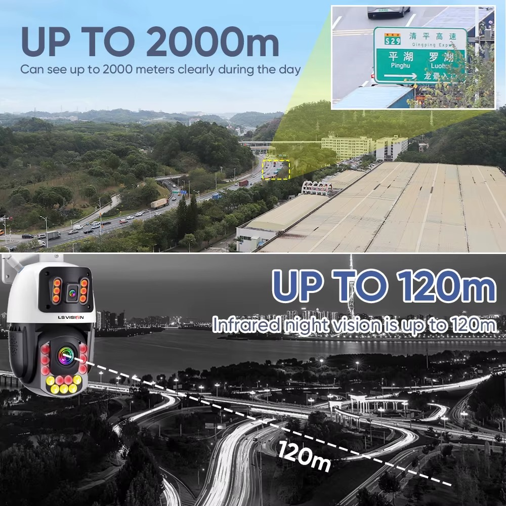 Camera de supraveghere Wi-Fi LS-WL560-50X este o soluție premium pentru monitorizare la distanță lungă, special concepută pentru zone extinse precum ferme, depozite, parcări, perimetre industriale sau curți mari. Cu un modul PTZ masiv de 6 inci, rezistență metalică superioară și tehnologie Dual-Lens Dual-Screen, oferă supraveghere ultra-clară atât de aproape, cât și de la sute de metri distanță.