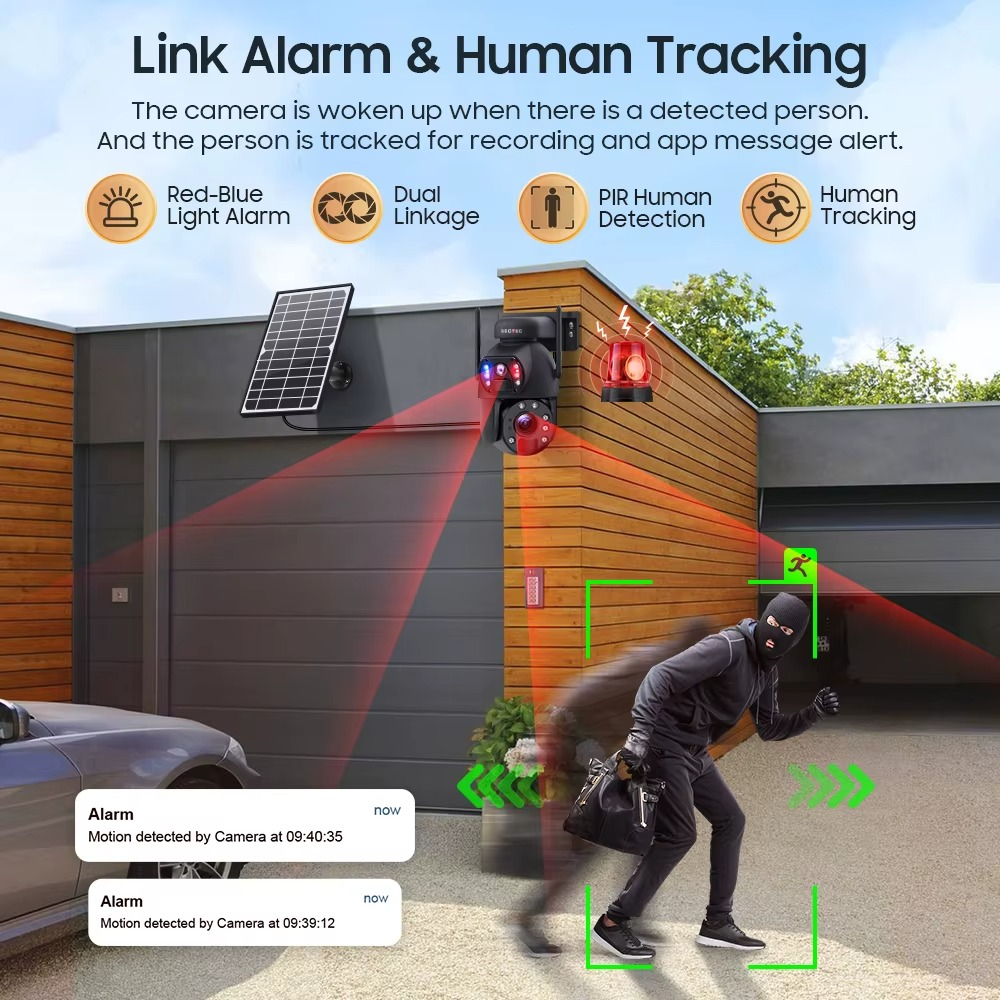 Cameră Supraveghere Wi-Fi Solar PTZ 6MP | Zoom 20X | Dual-Lens | Detecție Umană PIR | IP66